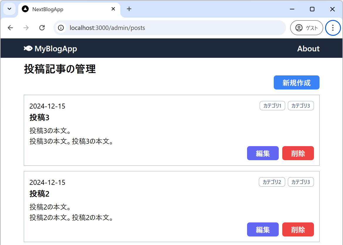 Next.js (React) を使用してブログアプリ開発をしています。そこで、